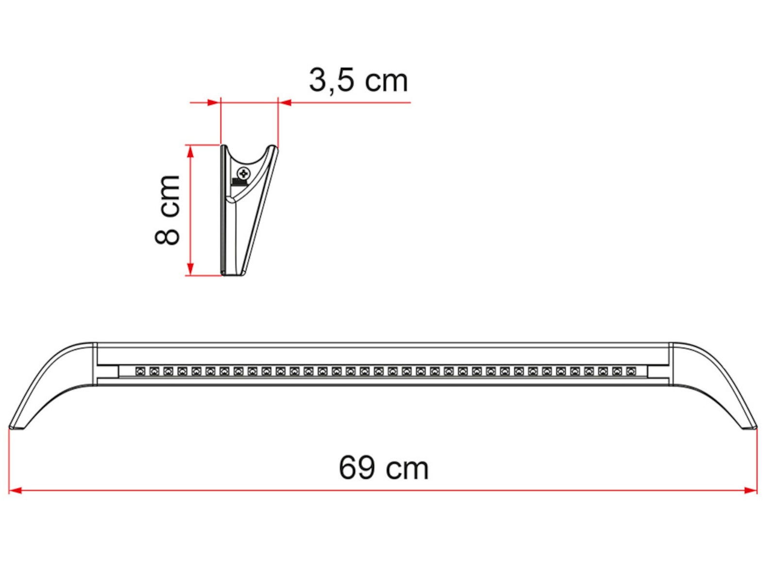 The Fiamma LED Awning Light Gutter is elegantly designed to fit around the top of the door frame, its curved shape allows this light to also act as a rain gutter.