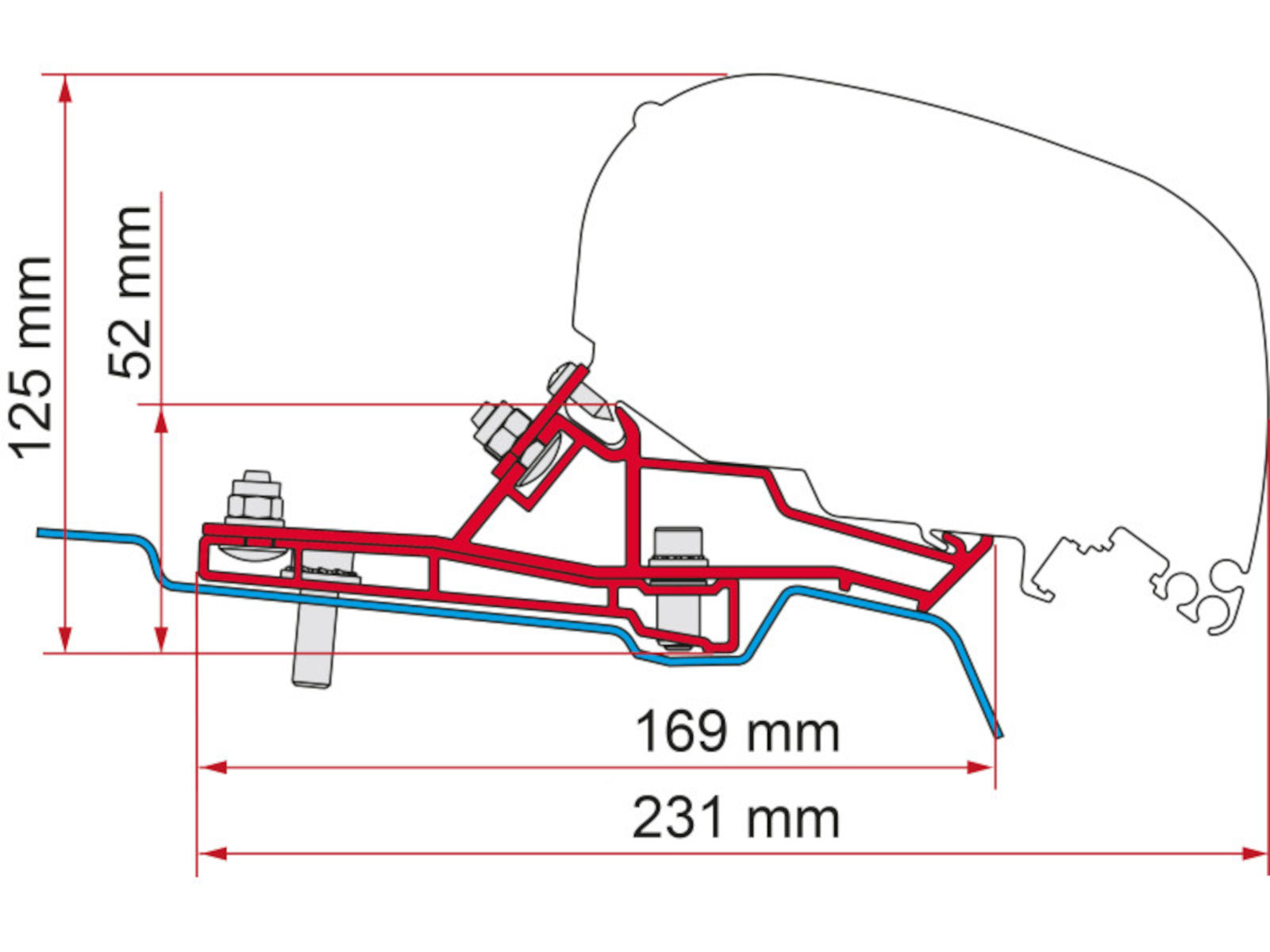 Fiamma awning fitting kit to install Fiamma F80 awning on Ford Transit Mk8 vans H2 L2