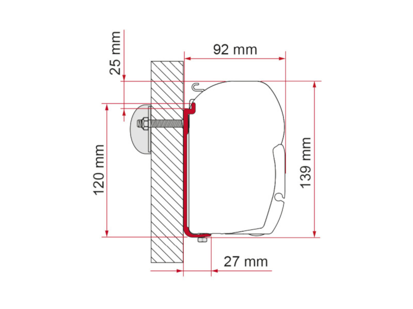 Single, 40cm long aluminium installation bracket for the Fiamma F45 awnings. Suitable for bolt-through-wall installation of F45 awnings on coachbuilt motorhome and other flat wall installation.