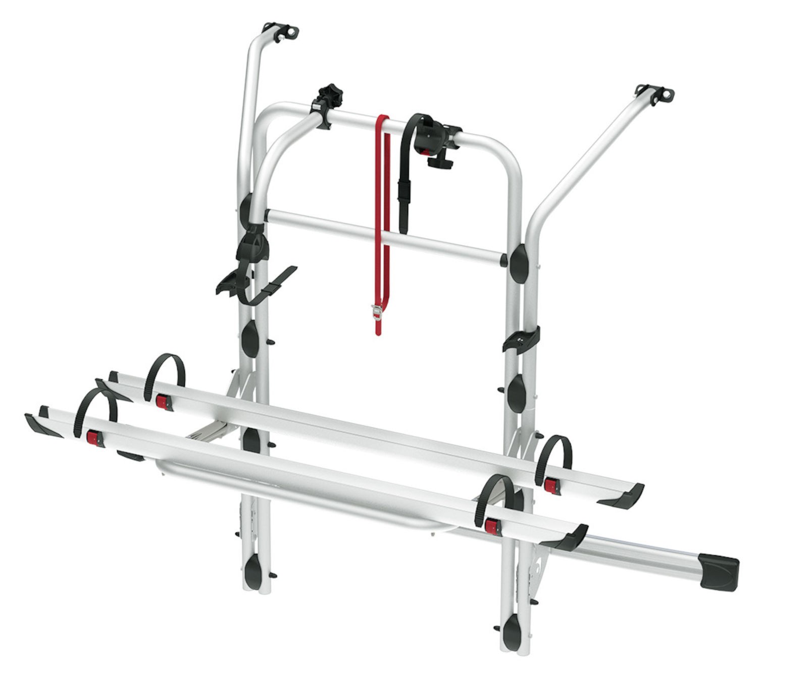 Fiamma Carry Bike Mercedes V Class premium delivered as standard to carry 2 standard bikes OR 2 E-bikes, or can also be upgraded to carry up to 4 standard bikes. Comes complete with license plate carrier. which has the license plate holder bar and regulation light.