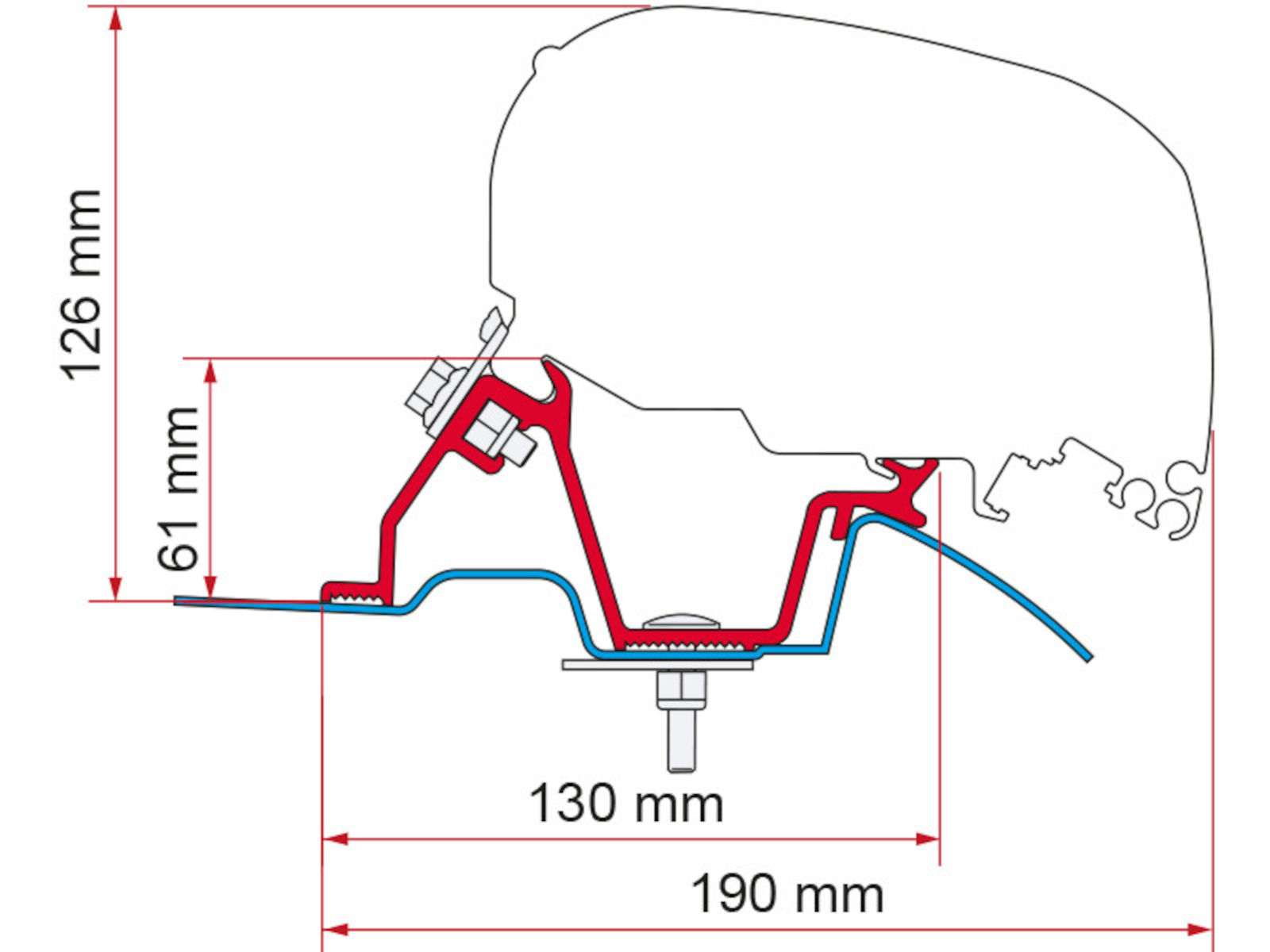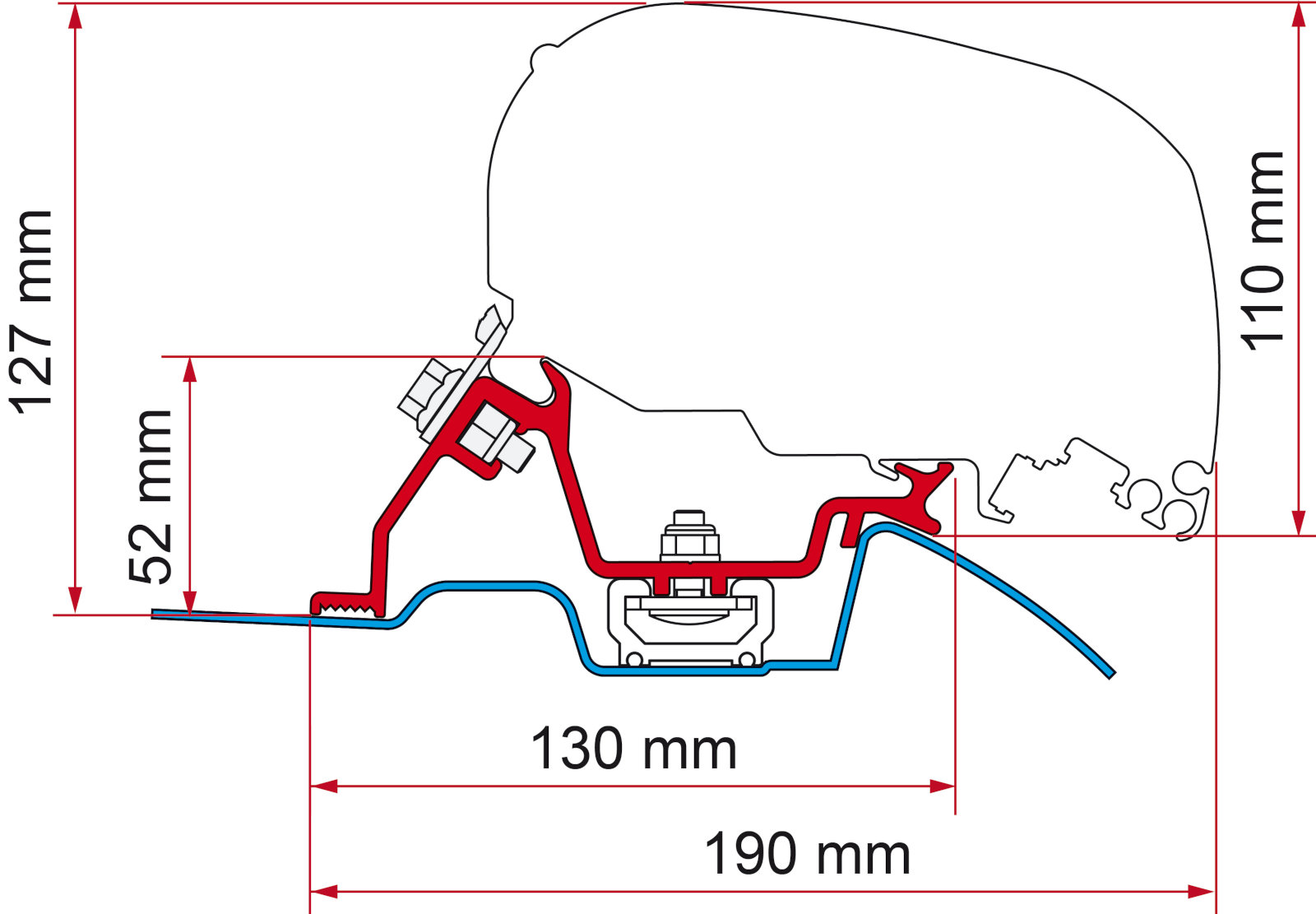 Motorhome awning installation kit for F65 and F65 S awnings. Suitable for versions of Sprinter with the manufacturer supplied Roof Rail.