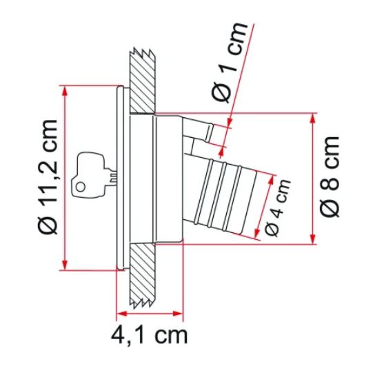 Fiamma water filler cap with lock that complies with European closure system standards. Installs with 3 screws, and sealed with foam washer against the motorhome body.